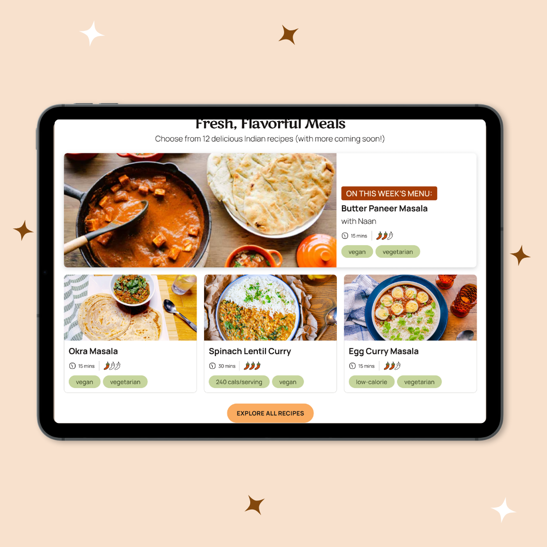 Our team pulled visual inspiration from FreshChefs’ brand assets, Indian culture, and competitors such as Blue Apron, Home Chef, and Plant Prepped.